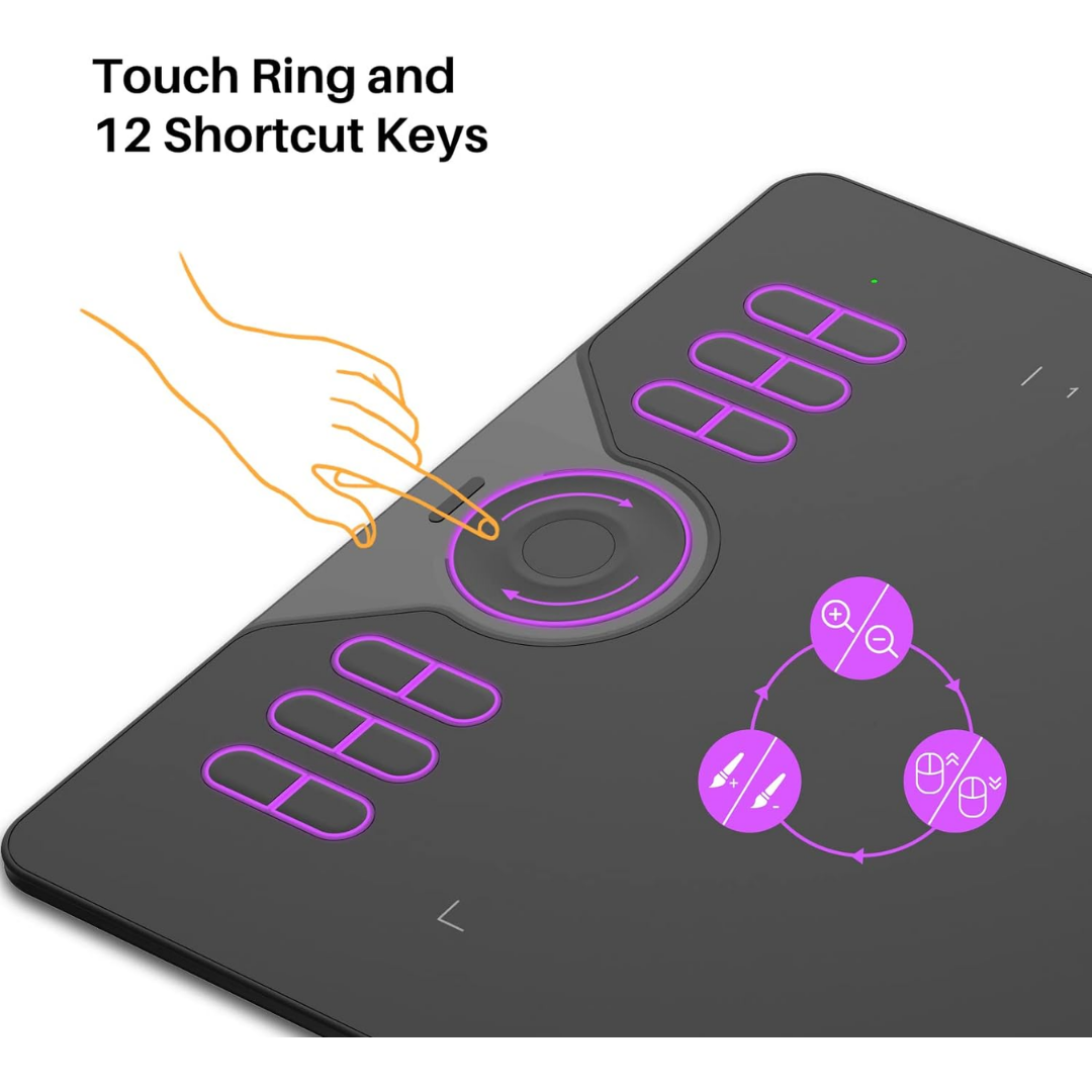 - 8192 Pen Pressure – The standard 8192 pressure sensitivity and 5080LPI pen resolution feature accurate, stable, and smooth drawing experience, offering you a professional and reliable device