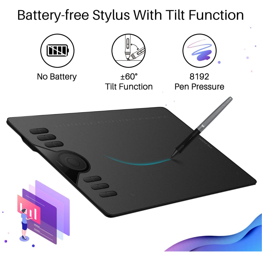 Drawing Tablet HUION Inspiroy H610X 10×6 inch Large Graphics Tablet with Battery-Free Stylus