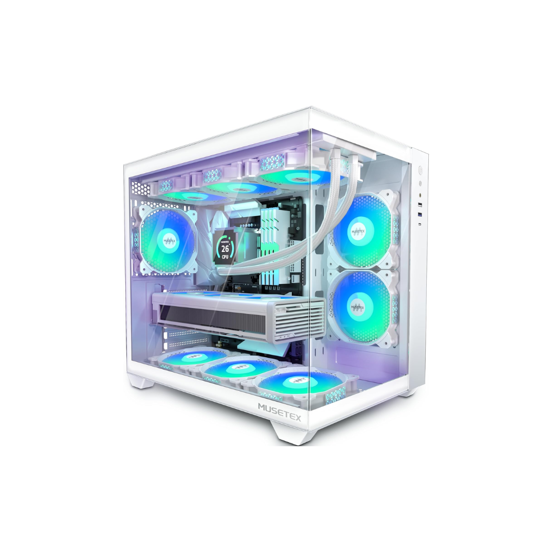 MUSETEX ATX PC Case, 6 PWM ARGB Fans Pre-Installed, 360MM RAD Support, Type-C Gaming PC Case